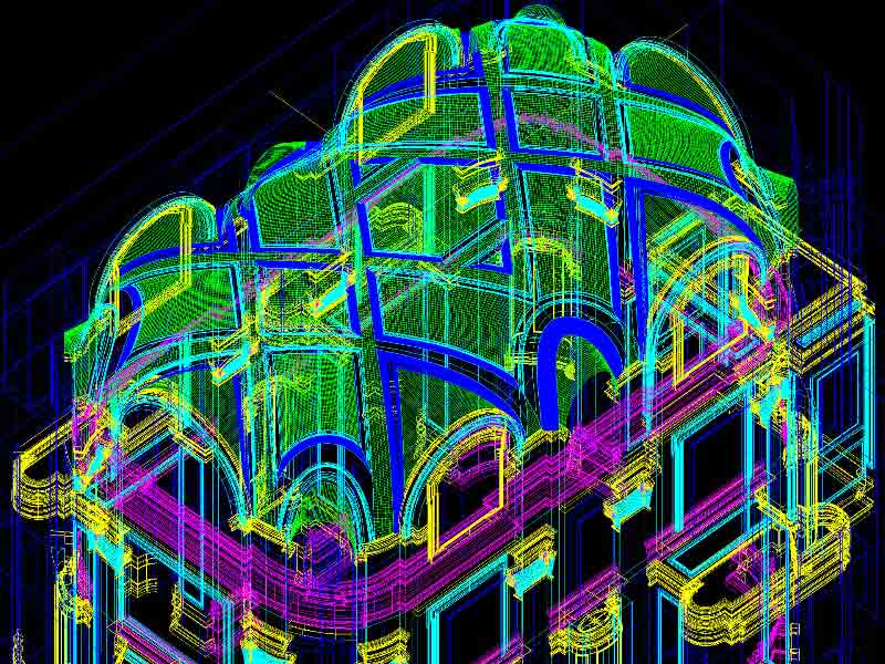 In highly detailed computer aided drawings you can look at the buildings in a modern display.